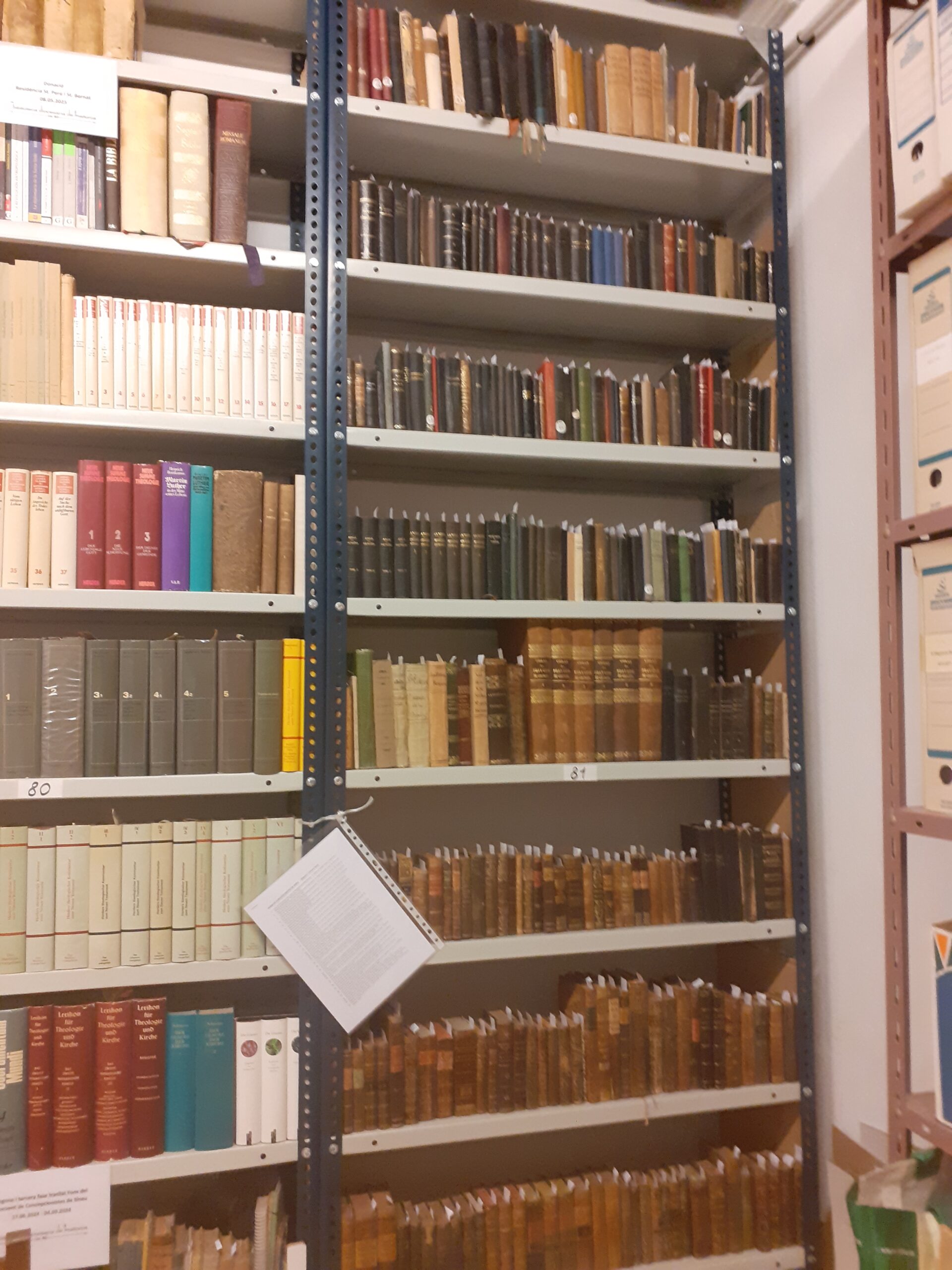 - S’ha fet una tria dins la prestatgeria central d’aquest dipòsit, i s’hi han deixat els llibres d’interès. Se n’han tret per expurgació uns 300 exemplars repetits, o que no eren pròpiament del context del fons de la Biblioteca. Per tal de crear nou espai, s’han recol·locat els exemplars que resten a les prestatgeries de forma correlativa, emplenant així els espais buits. Els llibres expurgats s’han exposat com a donatiu.